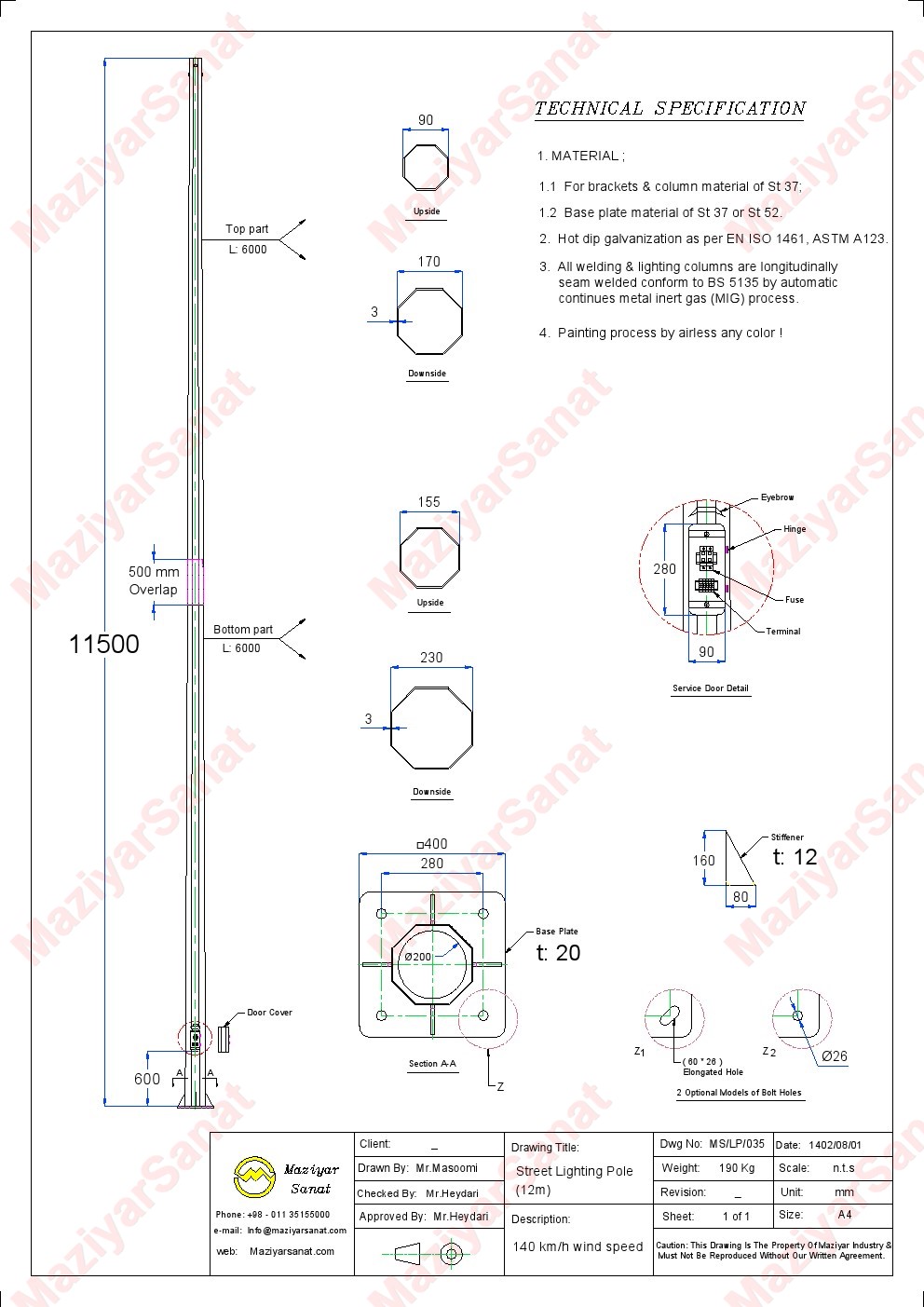 - Technical, General and Executive Specifications for Road Lighting Publication 614